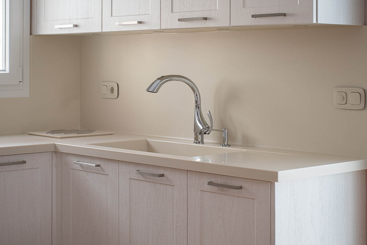 Μετά από μελέτη και σχεδίαση, η υλοποίηση ένος τέτοιου έργου ήταν δεδομένο ότι θα είχε ένα άρτιο αποτέλεσμα. Η διαρύθμιση του χώρου βοήθησε αρκετά. Μοναδικά, σύγχρονα υλικά συντελούν στην τέλεια αισθητική αναβάθμιση της κουζίνας αλλά και στην αντοχή των υλικών.